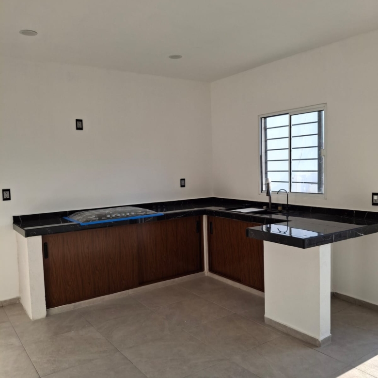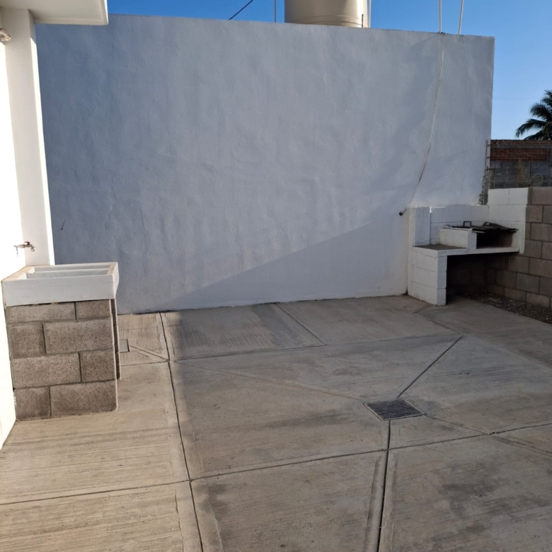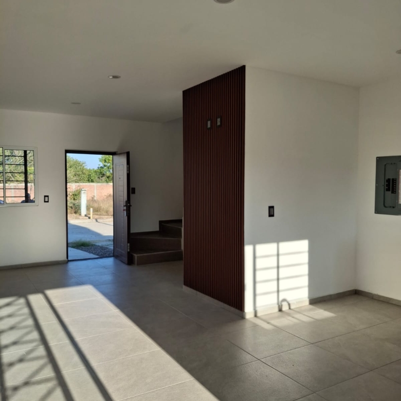 Sala-Comedor, Cocina, escalera y ½ baño, patio de servicio (lavado), área de asador y espacio para 2 vehículos
