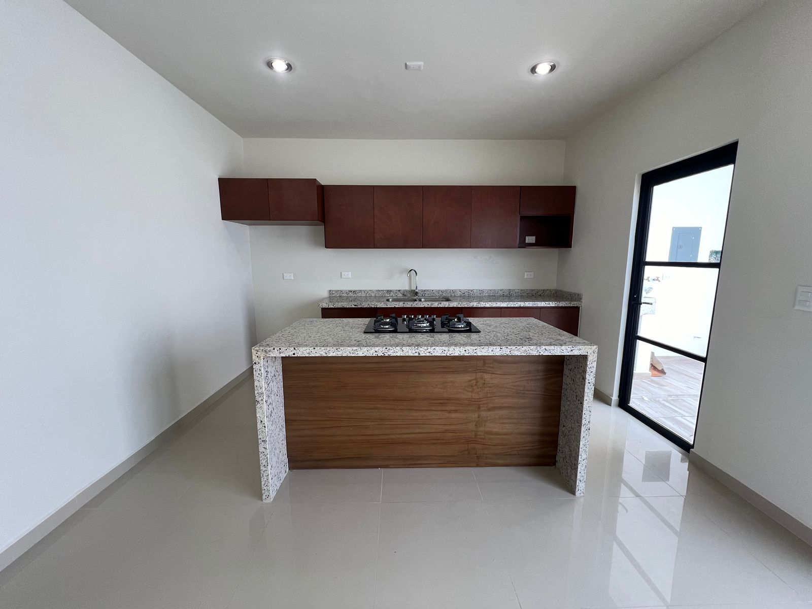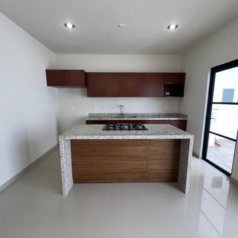 – Cocina integral de cedro con caobilla con cubierta de granito.