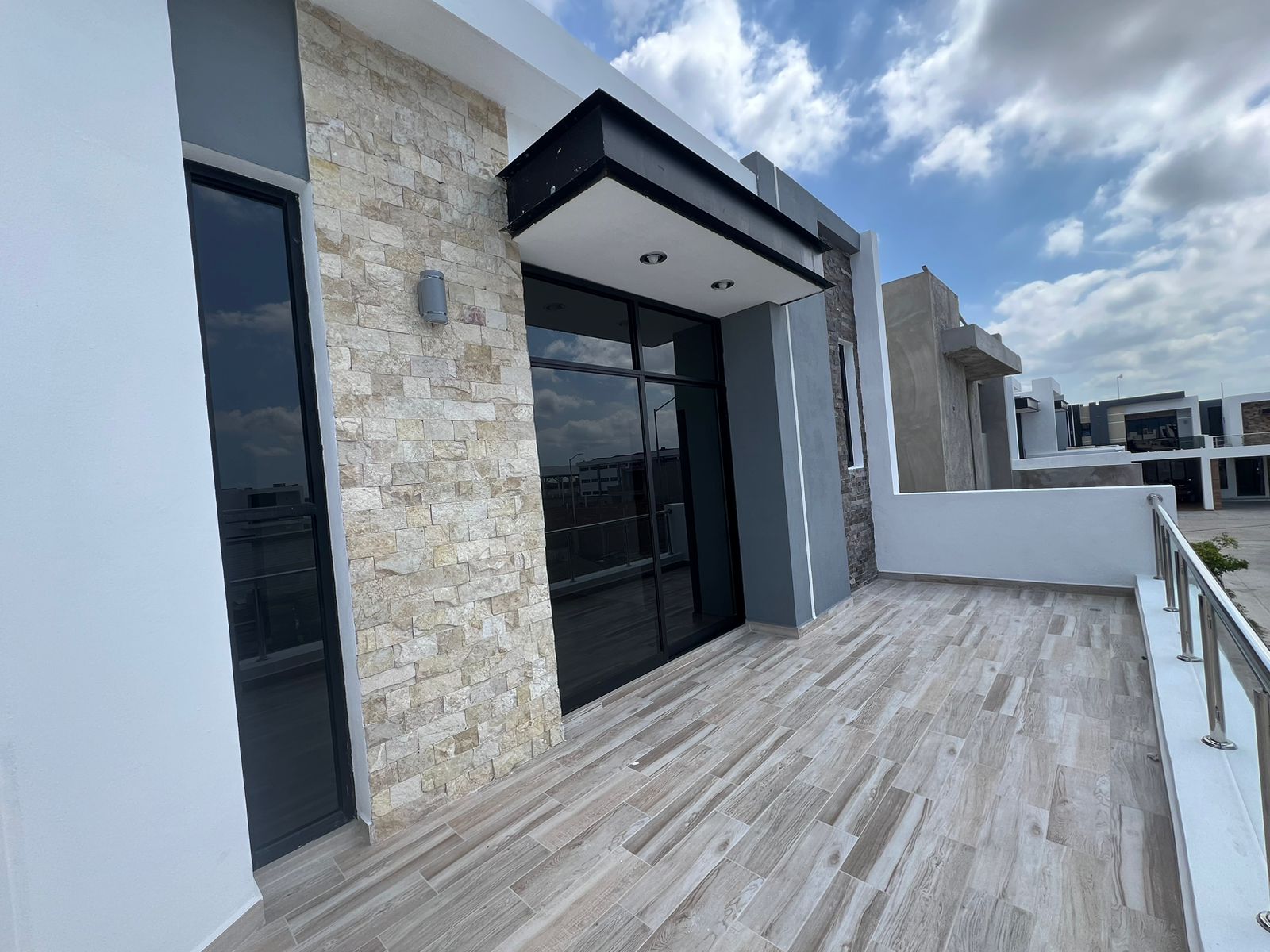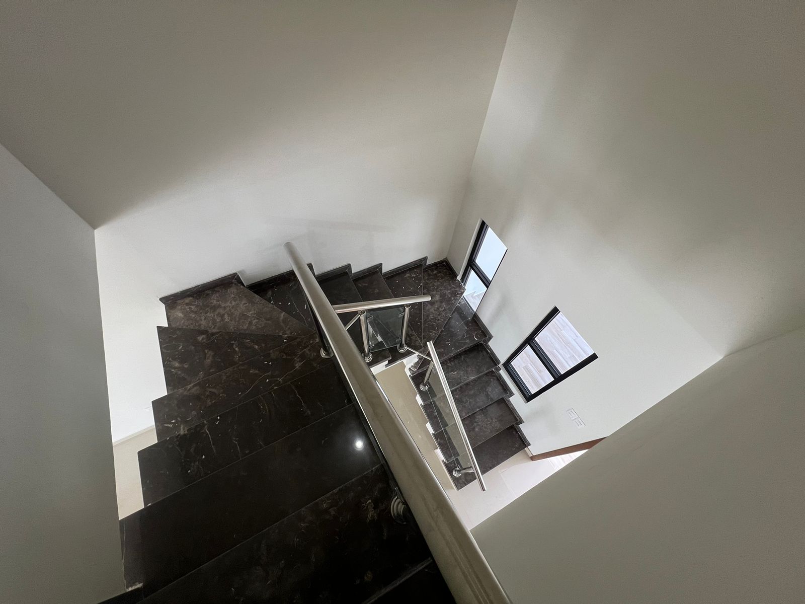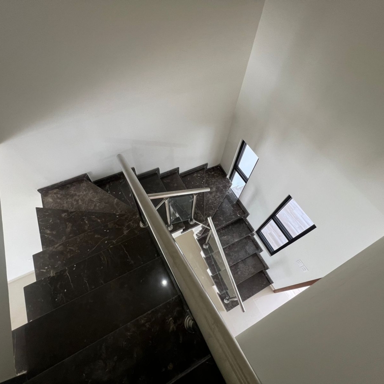 – Escalera de mármol Santo Tomas con pasamanos de acero inoxidable y cristal templado.